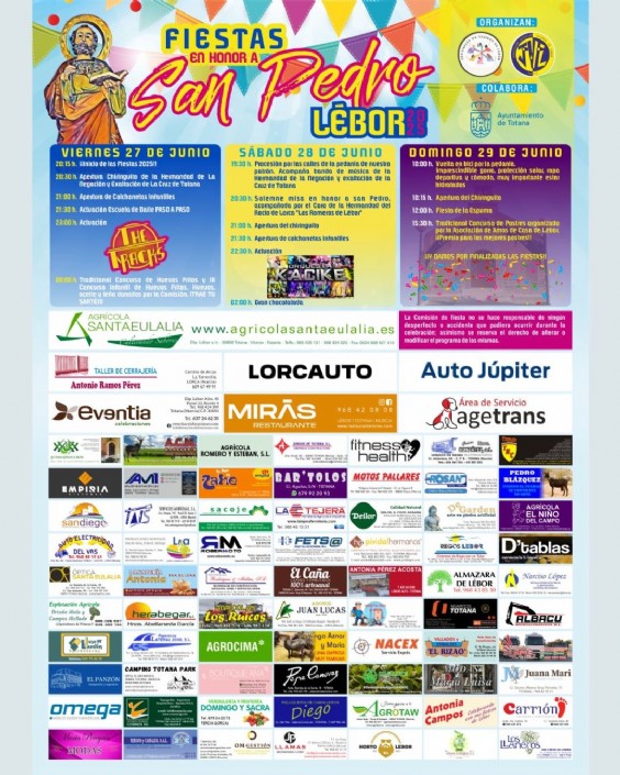 Las fiestas de este año de la Pedania de Lebor en honor a San Pedro se celebrarán el próximo viernes dia 27, sabado 28 y domingo 29 de junio, con diversas actividades para todos los publicos.
